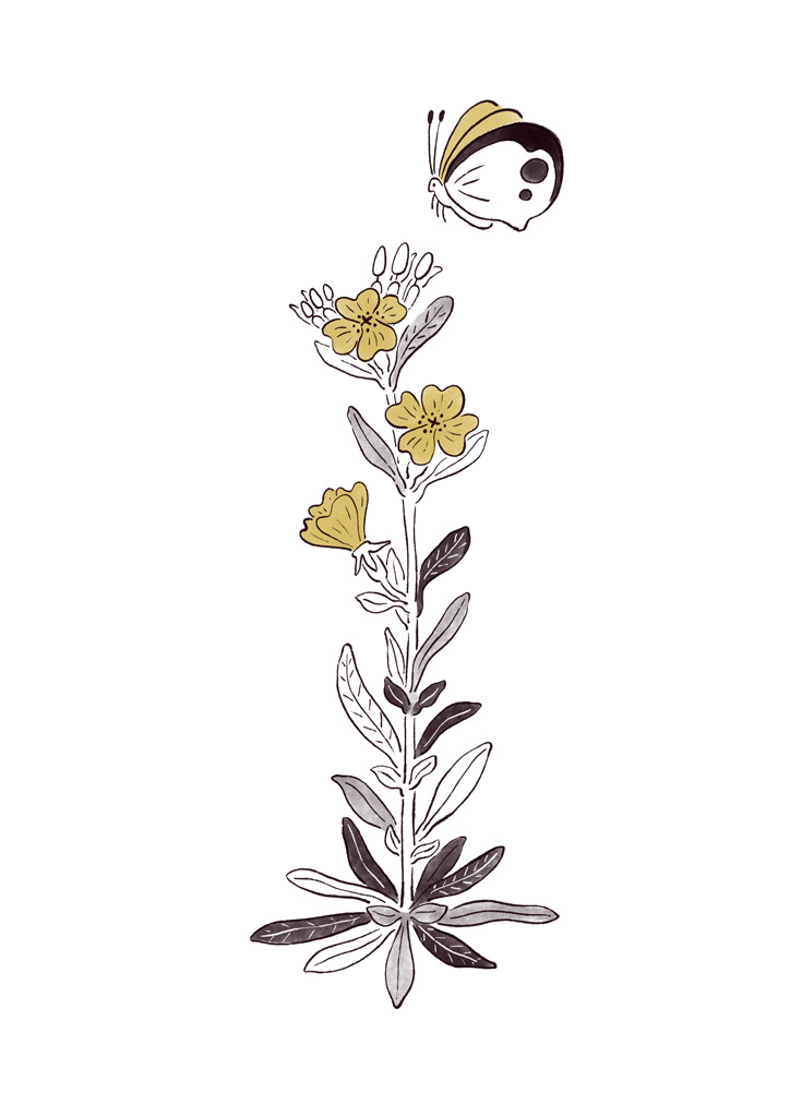 小さな黄色い花を咲かせる姫月見草。色味を絞って線画で表現しました。
