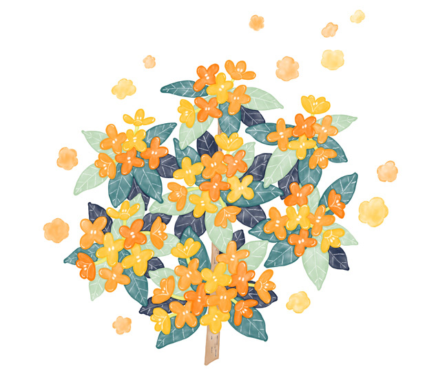 金木犀の香りが広がる様子を円形にまとめ、象徴的に表現しました。