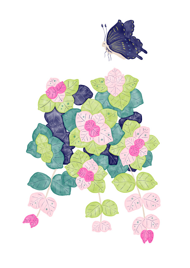 ハツユキカズラの葉が美しく見えるように、色や形のリズムを意識して構成しました。