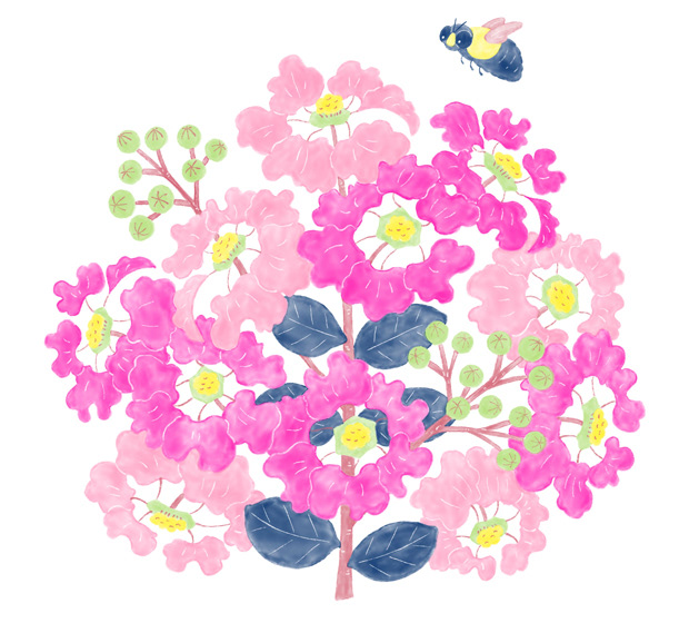サルスベリにはブーンと大きな音をたててクマバチが寄ってきました。