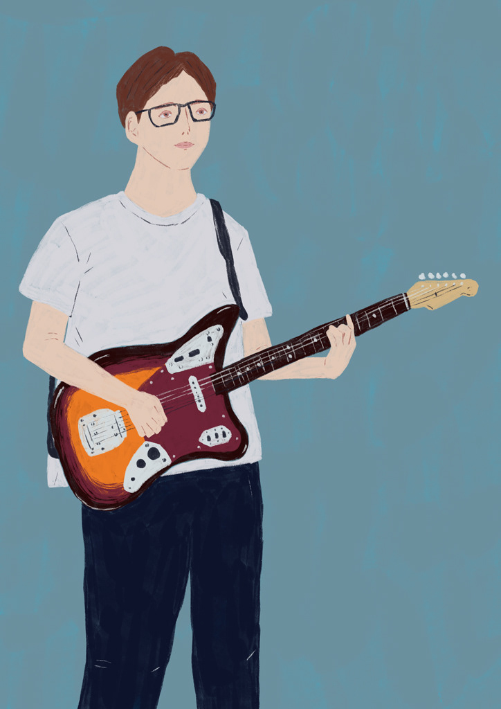 ギターの形と弦を押さえる指の形を観察しながら描きました。
