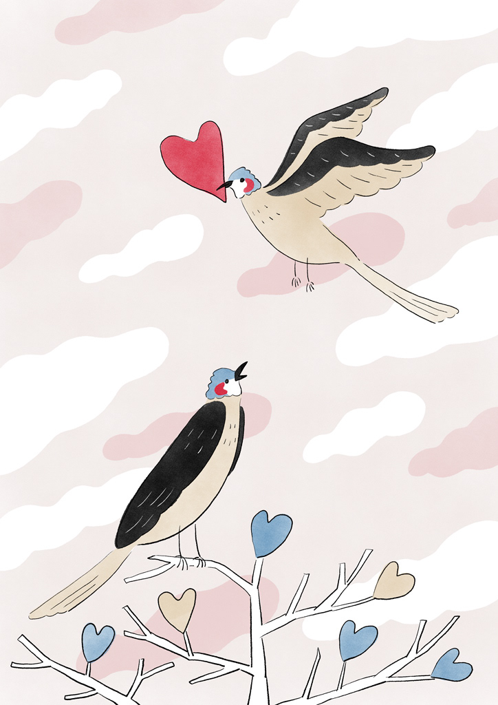 ヒヨドリはバレンタインシーズンの2月によく見かけるのでモチーフとして選びました。